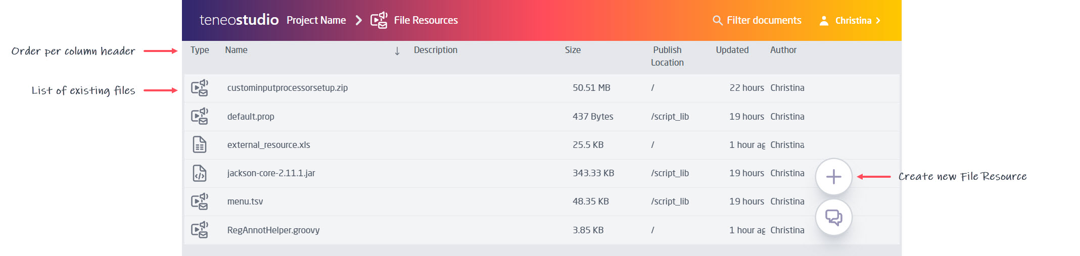 - In the backstage of Teneo Studio (Solution tab > Resources > File), select the file resource in the list